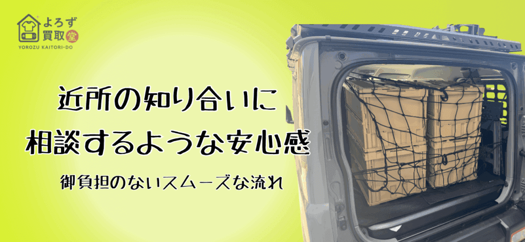 買取の流れ 2025.09.032025.09.11 ホーム >買取の流れ ホーム こだわり 買取の流れ 買取できる用品 対応地域 問い合わせ ① お問い合わせ お申し込みは電話またはラインのどちらかでOK!お問い合わせの際、細かい質問はいたしません。査定のご希望日時、お住いの地域と査定するものは多いか等、お伺いする際に使用する車の選定のための情報だけで大丈夫です。遺品整理で物が多い場合や、もの屋敷、ゴミ屋敷でどこに物があるのかわからない場合でも大丈夫。一緒に探すお手伝いもいたします。夜間対応も可能ですので、お仕事終わりでもご連絡いただけます。 ② ご訪問・査定 ご自宅へ訪問し、査定を希望された物の査定を行います。もの屋敷、ゴミ屋敷で査定を依頼するお品が選定できていない場合は一緒にお探ししてから査定いたします。査定にはネットオークション等のサイトを利用し,相場の価格をお調べしてから査定させていただきます。査定金額が適正なのかご心配なお客様には、サイトの相場価格を一緒に確認していただくこともできます。 ③ お支払い 査定額にご納得いただけましたら、その場でお支払いいたします。また、お取引した品目、買取金額をお取引後も確認できるように、買取明細書もお渡しいたします。査定金額に納得いただけなければキャンセルしていただいて構いません。もちろんキャンセル料はかかりません。 ④ 買取以外でのご相談も 遺品整理、不用品処分に関連した内容や、医療、介護に関連した内容等、幅広くご相談に応じます。また、信頼できる不動産、遺品整理業者等のご紹介も可能です。もちろんご相談に費用はかかりません。買取の成約の有無に関わらずご相談ください。 ホームに戻る